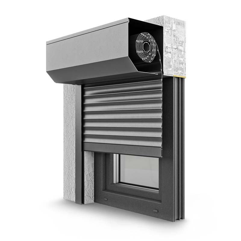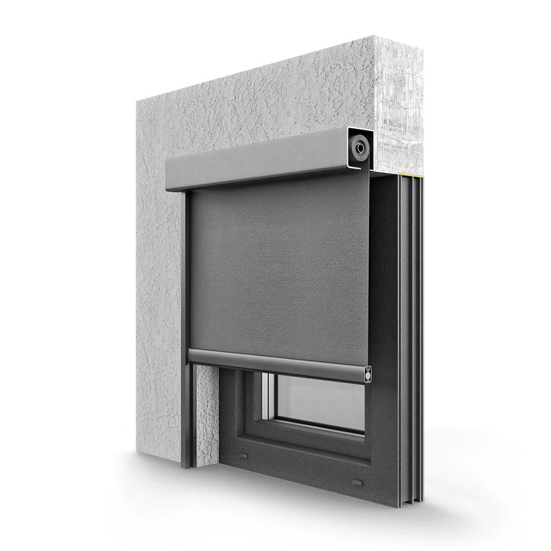 Die Sturzrollläden bieten eine diskrete und unsichtbare Lösung, da der Kasten vollständig geschlossen ist. Diese Rollos sind vielseitig und einfach an jeder Art von Wand zu befestigen.